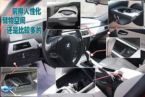 寶馬318的前排駕駛空間非常緊湊舒適,在駕駛員周圍分不了多處儲物空間,前排乘員的遮陽板部分還有帶照明的化妝鏡,人性化設計也是非常到位的。