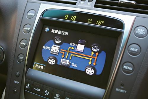 豐田產品的內飾總是不能充分調動我的胃口,即使是豪華品牌雷克薩斯也不例外,GS450h雖然標榜運動,但其內飾卻仍以溫馨、豪華為主基調。只要你對能量轉換定律稍有了解,7英寸觸摸液晶屏上時時顯示的能量轉換圖就絕對是個吸引你眼球的配備。那個高中物理課上最簡單也最深奧的能量轉換定律再一次在眼前不停的運算著。