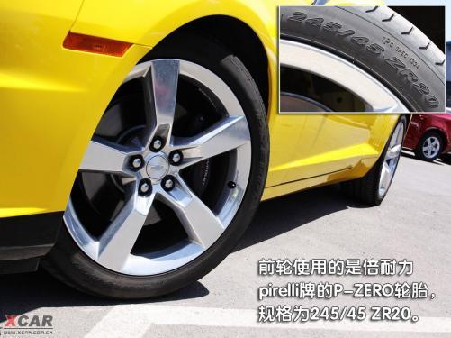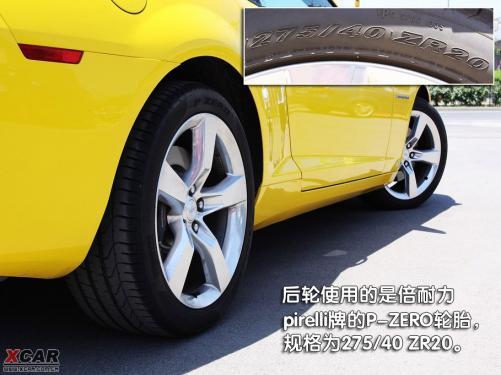 雪佛蘭Camaro的轉(zhuǎn)向燈設(shè)計(jì)得很有意思,在車身側(cè)面前后兩端的部位都可以看到,這一風(fēng)格有些保時(shí)捷的味道。而在車身的側(cè)面不僅能看到Camaro的字樣,在前輪后邊的位置上,還可以看到通用GM的logo,起到了非常不錯(cuò)的裝飾作用。五輻鋁合金輪轂簡潔、硬朗,很符合這款車的風(fēng)格,同時(shí)4只腳上穿得都是倍耐力pirelli牌的P-ZERO款運(yùn)動(dòng)鞋,前邊兩雙鞋的尺碼為245/45 ZR20,后邊兩雙鞋的尺碼為275/40 ZR20。透過輪轂還可看到,前后輪的剎車卡鉗上均帶有brembo字樣。