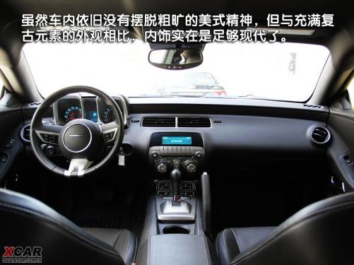 雖然車內(nèi)依舊沒有擺脫粗曠的美式精神,但與充滿復(fù)古元素的外觀相比,內(nèi)飾實在是足夠現(xiàn)代了。全黑內(nèi)飾非常符合運動轎車的風(fēng)格,讓車內(nèi)充滿了戰(zhàn)斗的氣息,但這些戰(zhàn)斗氣息有些過于讓人感到壓抑,如果座椅、方向盤、檔把上白色的走線能換成與車身相同的黃色走線,以及在車門上也能使用一些黃色走線,就能為乘客多帶來一絲觸動,更容易激起駕駛者的腎上腺素。