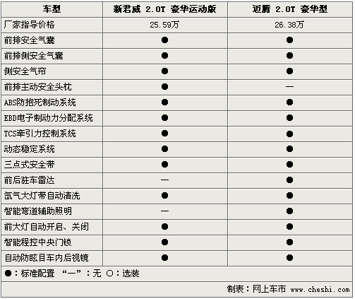 新君威2.0T和邁騰2.0T作為個性中級車,其在安全性能方面可謂是下足了功夫,前排安全氣囊、側安全氣囊及電子穩定程序等均成為三款車的標準配置。而新君威2.0T配備的主動式頭枕,較邁騰2.0T提高了主動安全性能。此外,邁騰2.0T配備的前后駐車雷達,較邁騰2.0T的倒車雷達更加人性化。