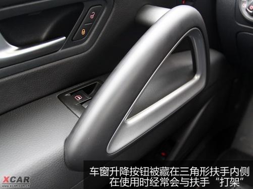 雖然還是那么熟悉的儀表臺,但尚酷還是有自身獨特的設計。車門上的三角形扶手造型很不錯,搭配銀色仿金屬裝飾很大程度上提升了車內的質感。旁邊圍繞著日常相關的操作按鈕,不過一鍵式車窗升降按鈕被藏在三角形扶手內側,在使用時經常會與扶手“打架”,略顯不便。