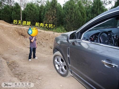 最后,來到此次試駕難度最高的障礙,一人深的大坑讓人望而卻步,下車觀察一番發現上坡路面松軟并且坡度不小,考量一番,制定了下坡慢、上坡快的方案,控制速度緩慢接近坑底,首先讓車頭慢慢順上陡坡,此時逐漸加大油門幫助車輛迅速脫離陡坡,個別車輪空轉時有發生,好在合理的車速和充沛的低扭使車輛頑強的通過了最后的考驗。