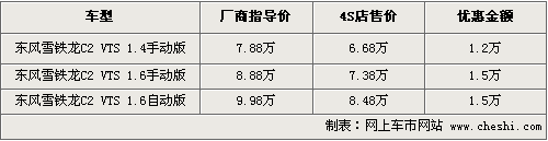 C2作為東風雪鐵龍旗下的主力A級兩廂車型,憑借時尚的外觀和出色的動力性能贏得了廣大消費者的認可。但隨著眾多競爭車型的上市銷售,C2的銷量也沒有得到明顯的改善,進而在價格方面的優惠有了一定幅度的放松。目前C2全系車型最高可優惠1.5萬元,具體行情如下: