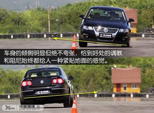進入樁桶,指向精準的方向盤對路面反饋仍然細膩清晰,懸掛的收縮很快,韌性十足。雖然車頭依然有一點轉向不足,但是良好的人車溝通和后輪跟隨性,使新邁騰無限接近操控的極限。