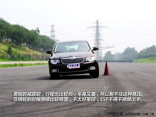 按照常規,我們還要進行繞樁測試。但開始之后我就覺得這樣做有點不靠譜,昊銳實在不適合這么開。輕飄飄的方向沒有一點手感,懸掛也很難讓車身保持平穩,每次都是壓縮到極限,然后迅速回彈,車身在樁桶間很機械的扭來扭去。ESP好像也知道車身在掙扎,很頻繁的啟動。總之昊銳基本上談不上什么運動天賦,還是回到公路上四平八穩的駕駛吧。