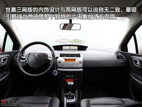 內飾的設計依舊保持了雪鐵龍特立獨行的設計風格,數字式的儀表不偏不倚的矗立在前檔玻璃下方,并且采用半透設計,此類設計在其他車型上絕無類似。雙輻方向盤中央裝載氣囊的部分不會隨著方向盤轉動,這使得世嘉可以使用非圓形的駕駛座安全氣囊,以更好的保護駕駛者。
