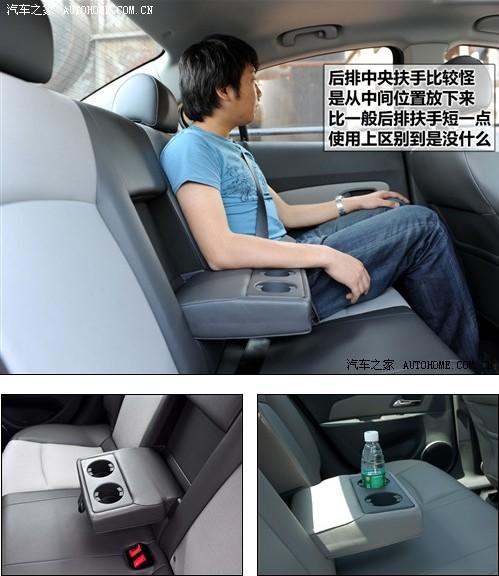 科魯茲的后排扶手樣子看上去比較奇怪,尺寸比較寬但卻很短,不像其他車型是從座椅靠背直接放下來的。實際使用的時候,胳膊基本能放在上面,但手就只能耷拉著了。如果放了飲料的話基本上就沒法使用了。不過因為比較寬,倒是非常適合兩個人同時用。