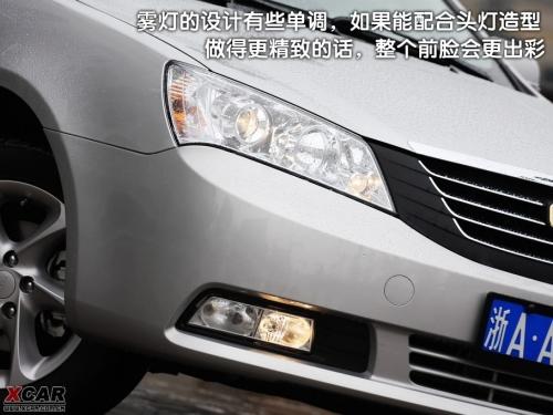 以黑色塑料為主的百葉窗風(fēng)格進(jìn)氣格柵很有特點(diǎn),個(gè)人感覺和以方塊為基調(diào)的盾形車標(biāo)搭配恰到好處。頭燈和尾燈都是眼下最流行的造型,雖然依稀還有些模仿的影子,但是整體效果不錯(cuò)。如果把帝豪車標(biāo)擋住的話,真的很難想到這是一臺吉利車。美中不足的是霧燈的設(shè)計(jì)有些單調(diào),如果能配合頭燈造型做得更精致的話,整個(gè)前臉會更出彩。