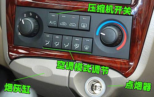 名馭的空調(diào)控制區(qū)域和老款風(fēng)格一樣,下方位置配備了一個(gè)隱藏式的煙灰缸,右邊配備了點(diǎn)煙器。按鍵和旋鈕操作時(shí)沒(méi)有松垮的感覺(jué)。