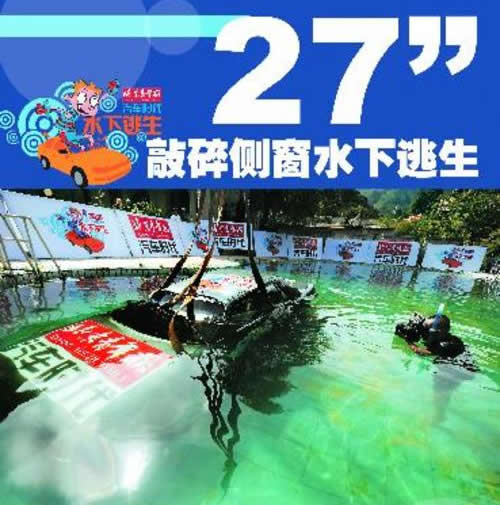 由《北京青年報(bào)》舉辦的"車輛落水逃生試驗(yàn)"上周在懷柔雁棲景區(qū)的巴克公社進(jìn)行。試驗(yàn)分三段進(jìn)行,在車輛落水后,分別驗(yàn)證了推開(kāi)車門逃生、砸破側(cè)窗逃生和砸碎前風(fēng)擋逃生。試驗(yàn)結(jié)果顯示,車輛落水后保持鎮(zhèn)定、積極措施自救,是成功逃生的保證。推開(kāi)車門逃生是最直接、快速的自救方法。