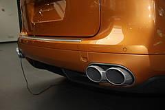 21英寸SportPlus合金車輪以及由四個鑄鋁尾管構成的運動型排氣系統,成為保時捷卡宴Turbo S的標志性裝備。此外,其前橋陶瓷制動盤直徑為410 mm,后橋制動盤直徑為370 mm,制動作用力通過前橋的六活塞卡鉗和后橋的四活塞卡鉗實現。