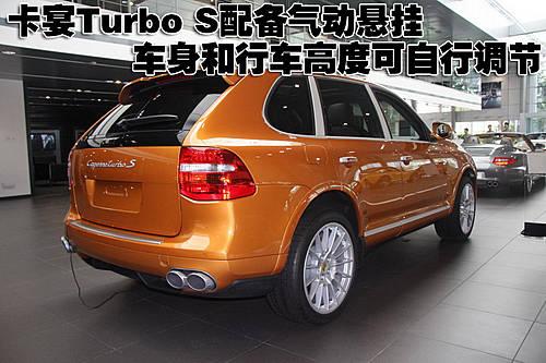 保時捷卡宴Turbo S配備氣動懸掛系統底盤,具有車身高度調節和行車高度控制功能,此外還再次標準裝備了保時捷主動懸掛管理系統(PASM),同時組合了保時捷動態底盤控制(PDCC)和Servotronic(伺服電子系統)速敏可變動力轉向系統。