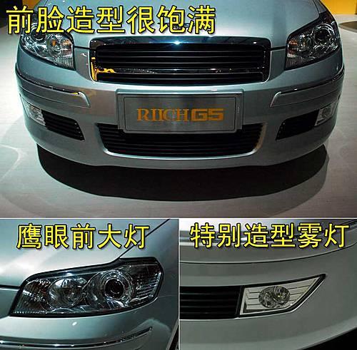 瑞麒G5具有潮流感極強的商務運動外型設計,長方形的鍍鉻裝飾進氣格柵,使整個前臉看上去更具幾分侵略性。前大燈采用鷹眼式設計,霧燈的造型比較特別。瑞麒G5的尾部線條非常流暢,與奇瑞東方之子生硬的尾部造型有明顯的差別。這款新車采用一體式尾燈,紅白相間的設計更顯幾分大氣。另外,瑞麒G5尾部還配備了四點式倒車雷達探頭。