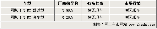 據(jù)銷(xiāo)售人員介紹,現(xiàn)在北京授權(quán)經(jīng)銷(xiāo)同悅系列車(chē)型的經(jīng)銷(xiāo)商并不多。各家店內(nèi)已經(jīng)開(kāi)始大量銷(xiāo)售兩廂同悅RS系列車(chē)型,問(wèn)及1.5L的同悅系列時(shí),經(jīng)銷(xiāo)商表示仍未上市。不過(guò)現(xiàn)階段在店內(nèi)購(gòu)買(mǎi)1.3L同悅?cè)龓?RS全系車(chē)型可給出3800元的現(xiàn)金優(yōu)惠。