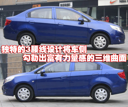 雪佛蘭-新賽歐車身側面的三條腰線,勾勒出富有立體感和力量感的三維曲面。而其前長后短的車頭車尾比例、前短后長的懸掛分配、上薄下厚的體積組合和前低后高的車身姿態,也進一步突出了新賽歐的外觀視覺效果。
