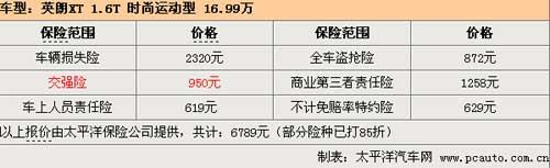 以指導價16.99萬的英朗XT 1.6T 時尚運動型為例,保險方面購買了第三者50萬元責任險,每年的保險費用為6789元。