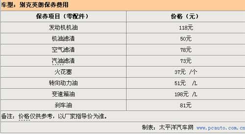 保養方面,上海通用為英朗提供了2年5萬公里的保修期,車輛每5000公里保養一次,在費用方面,由于別克官方還沒有對英朗價格作出公布,所以我們以科魯茲的保養費用來給英朗做一個估算,大概做一次小保養大概需要300元,在6萬公里需要進行一次大保養需要接近1000元,總的來算一年車主在保養方面需要花費1300元。