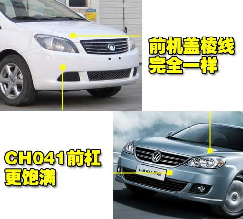 首先,從CH041的整體造型來看,兩車是相當的神似,尤其側面的雙腰線設計,上腰線自前輪眉貫穿前后門外拉手一直延伸到后尾燈處,兩車是完全相同的,而下腰線的設計CH041只是更窄一些,但設計風格依然區別不大。