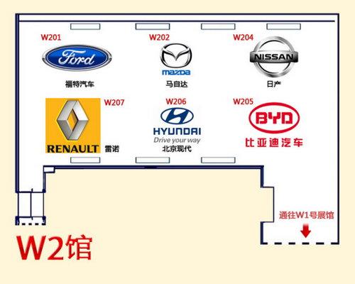 在本屆北京車展,W2館有日產(chǎn)、現(xiàn)代、馬自達(dá)、比亞迪汽車、福特汽車、雷諾等共6個品牌參展,主要亮點車型:日產(chǎn)LEAF、日產(chǎn)Juke、北京現(xiàn)代RC、北京現(xiàn)代i50、馬自達(dá)馬自達(dá)8、比亞迪S6/L3、福特銳界、福特新福克斯以及雷諾新梅甘娜CC等。