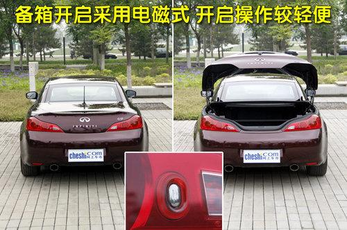英菲尼迪G37敞篷版較四門版車型更為動感時尚,整體設計偏向年輕化群體,外觀整體線條流暢,圓潤的設計絲毫不顯突兀。外觀做工沿襲了英菲尼迪造車一貫的細膩風格,模具制造與噴漆工藝均屬上乘,前大燈與引擎蓋接縫十分勻稱,保險杠、發動機蓋及水箱框架等周圍的接縫同樣非常勻稱。