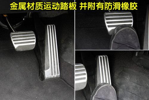 G37敞篷版車型為突出其運動風格,所以離合、油門、剎車踏板外部由金屬包裹,并帶有防滑膠粒,各踏板操作行程適中、輕便。