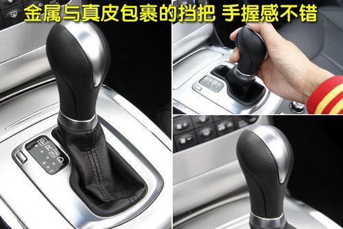 擋把使用了真皮包裹,用料十足,做工考究,擋把上還采用了金屬裝飾點綴,突出運動時尚風格,擋把的握感也很不錯。
