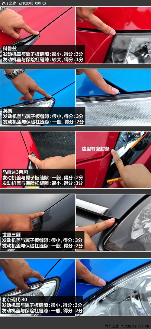 2、發動機蓋與大燈的接縫。十款車相比的話,縫隙較小的3分;有些車縫隙中有密封條,視為縫隙較小;縫隙一般大的得2分,縫隙較大的得1分。