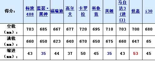 最后的結論也驗證了大家對于10款車的定位和認識:卡羅拉的懸掛很軟在情理之中,只是沒想到世嘉的懸掛比它還軟;而以運動見長的藍瑟·翼神和英朗沒有辜負大家的期望,果然擁有最硬的懸掛,高爾夫的表現(xiàn)也不錯。