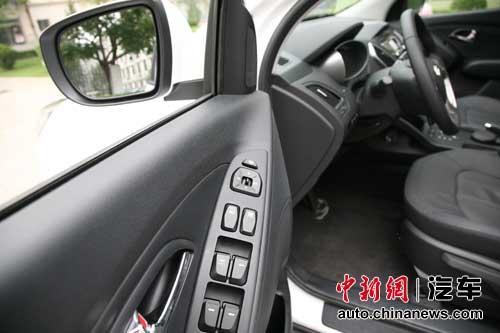 圖注:后視鏡帶一鍵折疊功能,在窄路上停車還是很有實用性的。另外,ix35只有司機側(cè)的車窗支持一鍵升降。