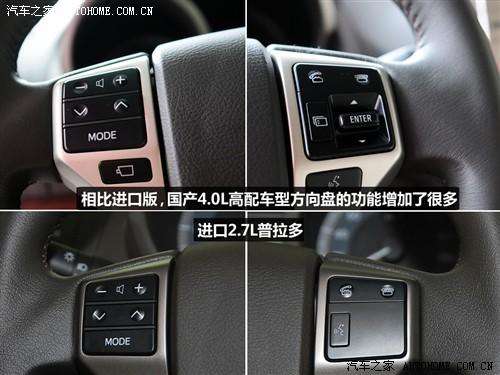 首先這款頂配車型的方向盤功能比之前實拍過的進口2.7L強大了很多,其次轉向柱具有電動調節的功能,只是由于官方配置表中并沒有這項配置,所以我們不知道這項配置在國產的低配車型上是不是也有。