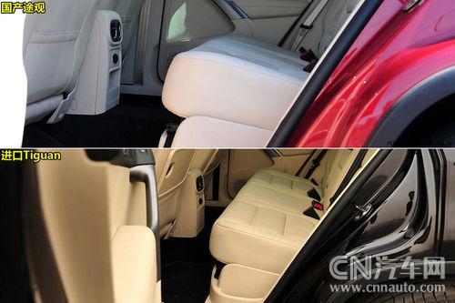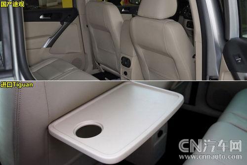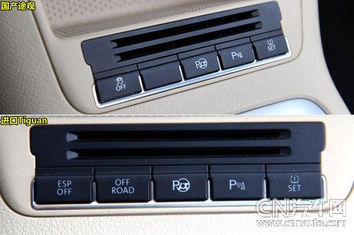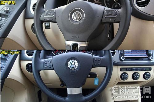 內飾及細節差異:國產車型在一些細節設計上要更具優勢,比如方向盤采用了高爾夫6式的新風格,方向盤輻條和多功能按鍵在金屬鍍鉻的裝飾下,明顯更具質感。此外,包括大燈調節旋鈕、電動車窗按鈕都增加了金屬風格的裝飾。雙區自動恒溫空調也啟用了和斯柯達昊銳相同款式的最新設計面板。而在一些并不是十分重要的配置上,國產車型省略后以進一步降低價格,比如音響面板上方的副駕駛席氣囊指示燈變成了卡片槽,手套箱中的副氣囊開關也沒有再出現。國產車型由于兩種排量多達8款車型配置,導航系統、全景天窗都可以選裝配置也讓消費者多了更多選擇。尤其是對于低端消費者,國產途觀還是具備相當的吸引力。