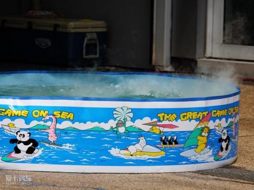 別看冒著白煙,這可不是熱水,冰水才是正解↑