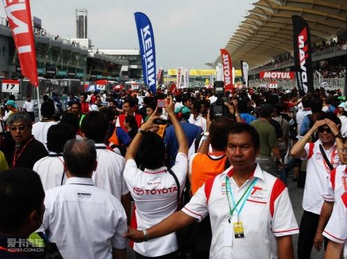 正賽開始前,所有賽車和模特都將走上賽道,此時會對賽會嘉賓開放賽道15分鐘,以供大家與自己喜愛的車手和模特們拍照。只是在這短短的15分鐘內,賽道上足以變得水泄不通,可見SUPER GT的火爆程度。