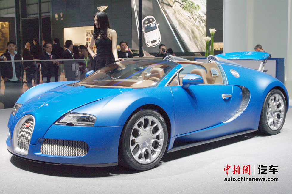 在人流如織的海外汽車巨頭的展館里,天價豪車成了當仁不讓的最搶眼明星,相形之下即使再靚麗的車模也黯然失色。圖為布加迪威航Grand Sport