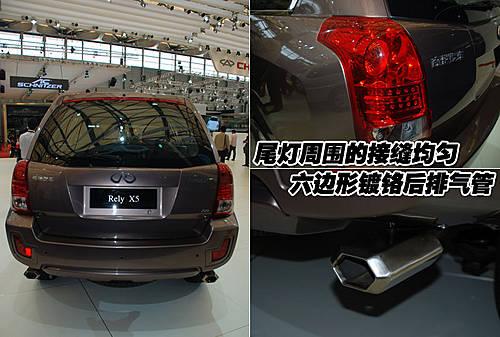 威麟X5的尾部也非常有特點,后尾燈和霧燈都采用耀眼、新穎的紅色設計,周圍的接縫也非常均勻。而且尾燈才采用LED設計。這款車型采用六邊形鍍鉻雙排氣管,給整車增添了許多運動氣息。