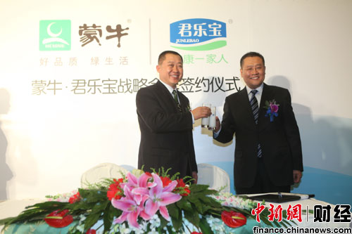 中新網11月22日電 蒙牛乳業集團和君樂寶乳業22日在北京聯合召開戰略合作新聞發布會,蒙牛將投資4.692億元持有君樂寶乳業51%股權,成為君樂寶的最大股東。此次合作將成為中國乳業近兩年來影響最大的一次合作,預示著中國乳業聯合、重組、兼并收購“浪潮”的來臨。