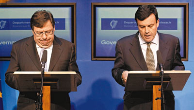 愛(ài)爾蘭總理考恩表示,援助計(jì)劃包括兩部分:首先當(dāng)?shù)劂y行業(yè)需要縮小規(guī)模,出售部分非核心資產(chǎn);其次是落實(shí)4年緊縮計(jì)劃,目標(biāo)在2014年前削赤150億歐元,將財(cái)赤占國(guó)內(nèi)生產(chǎn)總值(GDP)比例由目前32%減至歐盟規(guī)定的3%。