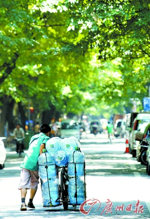 今年春節(jié)后廣州月薪2000元招不到送水工的新聞曾引起全國(guó)關(guān)注。日前記者采訪發(fā)現(xiàn)在天河體育中心寫字樓周邊水店的“勤快”送水工在高峰期的八九月份月薪最高竟可達(dá)5000元,而且多數(shù)水店整個(gè)夏天幾乎都是在送水工奇“缺”的狀態(tài)下咬牙“挺”過來的。記者調(diào)查發(fā)現(xiàn),由于送水工過于辛苦,已成“短線”工種,部分送水工做一兩年攢下錢即轉(zhuǎn)行,多數(shù)水店難覓3年工齡以上的熟手送水工。