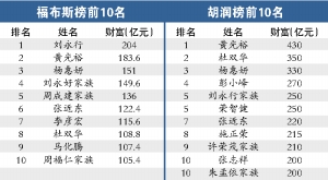繼本月初胡潤(rùn)“率先”公布《2008胡潤(rùn)百富榜》之后,記者昨日在《福布斯》中文版上也看到了其《2008年中國(guó)富豪榜》,或許刻意強(qiáng)調(diào)與胡潤(rùn)的區(qū)別,或許這一個(gè)月來(lái)全球資本市場(chǎng)動(dòng)蕩影響確實(shí)不小,福布斯的榜單,不僅前10名與胡潤(rùn)座次“大變樣”,就連“身家”也是相差甚遠(yuǎn)。福布斯昨日披露的首富劉永行在胡潤(rùn)榜單中僅列第5,胡潤(rùn)的首富黃光裕也被福布斯放在第2的位置上,而財(cái)富總額也由胡潤(rùn)榜中的430億元驟降至183.6億元。另外,楊惠妍在胡潤(rùn)榜里財(cái)富總額達(dá)330億元,但在福布斯榜里是151億元。福布斯制榜人指出,富豪的財(cái)產(chǎn)是根據(jù)最新股價(jià)得出的。