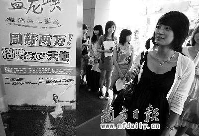 德慶盤龍峽2萬(wàn)元周薪招聘“薰衣草天使”活動(dòng)進(jìn)入了現(xiàn)場(chǎng)招聘環(huán)節(jié)。記者昨日在招聘現(xiàn)場(chǎng)看到,應(yīng)聘人需先填寫報(bào)名表格經(jīng)過(guò)第一關(guān)面試,過(guò)關(guān)后進(jìn)入第二關(guān)———拍照,而第二關(guān)讓不少人笑稱為“選美比賽”。
