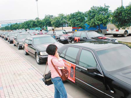 昨日下午2時30分許,在兩輛“三菱”越野車的帶領下,30輛清一色的黑色奔馳轎車列隊駛入西安咸陽國際機場停車場,引起不少過往乘客駐足觀看。 “不知道哪位貴賓要來西安?”不少人都小聲議論著。30輛黑色奔馳轎車中,西安本地牌照的不少,還有北京、天津牌照的車輛,全部為S500、S6OO系列。