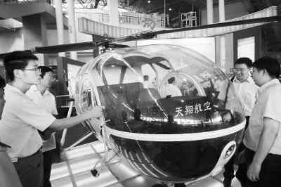 圖為該公司所制作的輕型直升機吸引了眾人的目光。 張馳攝