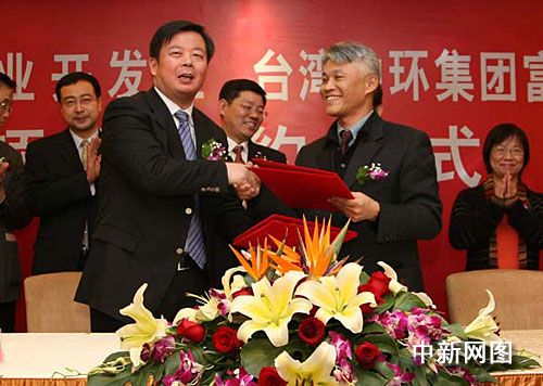 中新網(wǎng)南京1月29日電(記者 陳光明 顧寧先 )1月29日,南京國家高新技術(shù)產(chǎn)業(yè)開發(fā)區(qū)與臺灣中環(huán)集團(tuán)旗下富陽光電在鐘山索菲特高爾夫酒店共同簽訂“薄膜太陽能投資協(xié)議”。