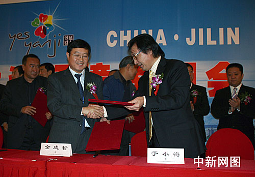 會上,還舉行了延吉市與北京宇辰集團合作總投資十億元,建設延吉市朝鮮族民俗風情園;延吉市與上海金太陽能源科技開發有限公司合作總投資二十二億元,建設年產一百二十兆瓦銅銦鎵硒太陽能電磁板和太陽能空調機項目等五個項目的簽約儀式,共計投資三十三億元。