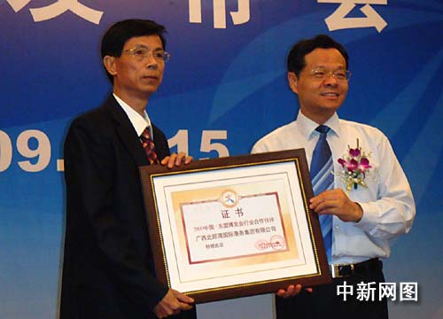 發(fā)布會(huì)上,中共廣西壯族自治區(qū)委員會(huì)常委、自治區(qū)副主席陳武為中國(guó)銀行廣西分行、廣西中煙、廣西北部灣國(guó)際港務(wù)集團(tuán)有限公司、上海通用汽車(chē)有限公司等此次與中國(guó)—東盟博覽會(huì)簽署合作伙伴協(xié)議的38家企業(yè)頒發(fā)證書(shū),表明雙方合作的極大誠(chéng)意。