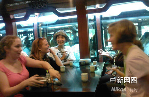 “運河的水很干凈,我特別喜歡兩岸的古建筑,有中國的味道。”乘著運河漕坊、品著龍井茶的一名外國游客告訴記者,1986年她第一次來到運河,那時兩岸破破爛爛的,水也很臟,但是現在一切都大變樣了。