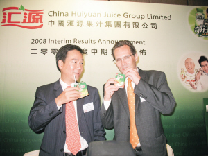 匯源果汁(01886.HK)半年業(yè)績(jī)說(shuō)明會(huì)昨日在香港召開,公司主席兼總裁朱新禮因參加其他會(huì)議而缺席,代表公司回答媒體提問的公司副總裁兼首席財(cái)務(wù)官吳育強(qiáng)表示,可口可樂收購(gòu)匯源果汁的價(jià)格是經(jīng)過(guò)慎重考慮,并且得到三大股東同意的。