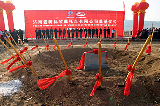 2006年12月18日,在濟南市高新技術開發區,中、法兩國代表出席濟南輕騎標致摩托車有限公司奠基儀式。資料照片