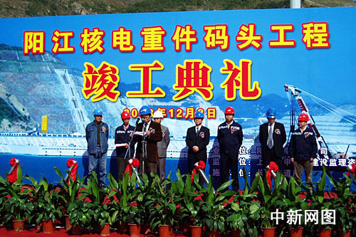 中新網宜昌12月4日電 (宋西林、艾志雄)2日中午,由長江宜昌航道工程局承建的中國最大核電項目、國家十五計劃的重要能源項目之一——廣東陽江核電工程重件碼頭工程竣工,這標志著該局實施的第一個核電碼頭工程項目的獲得了圓滿成功。這也是陽江核電核島主體工程開工之際迎來的首個完工項目。